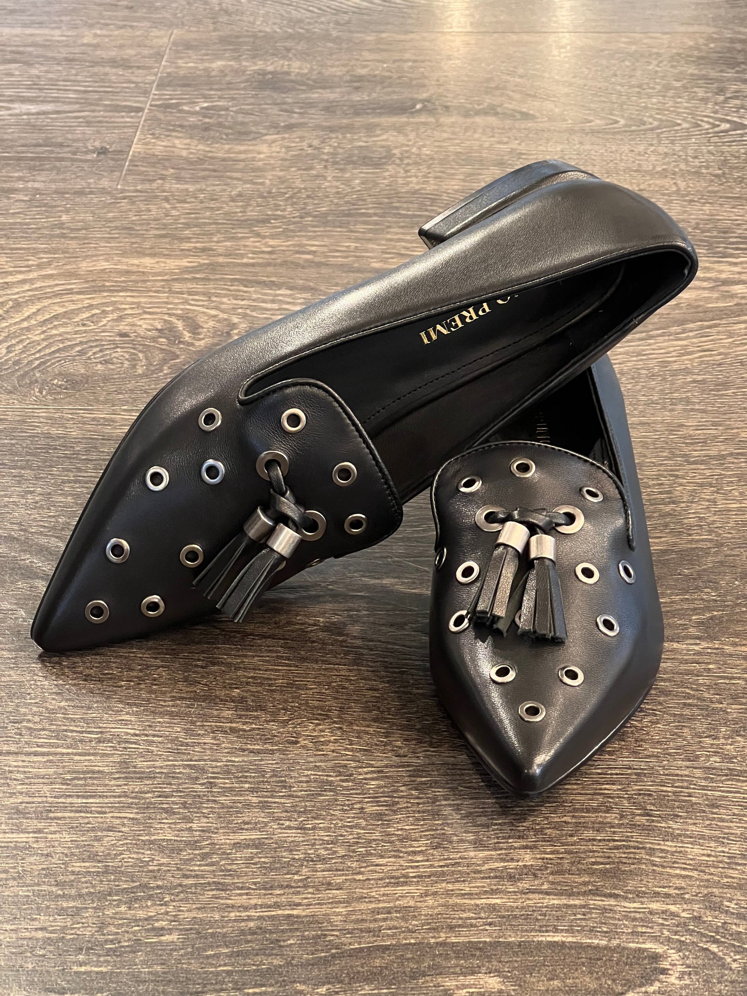 fondo gomma antiscivolo ,rivetti in metallo brunito arricchiscono, assieme alle nappine,