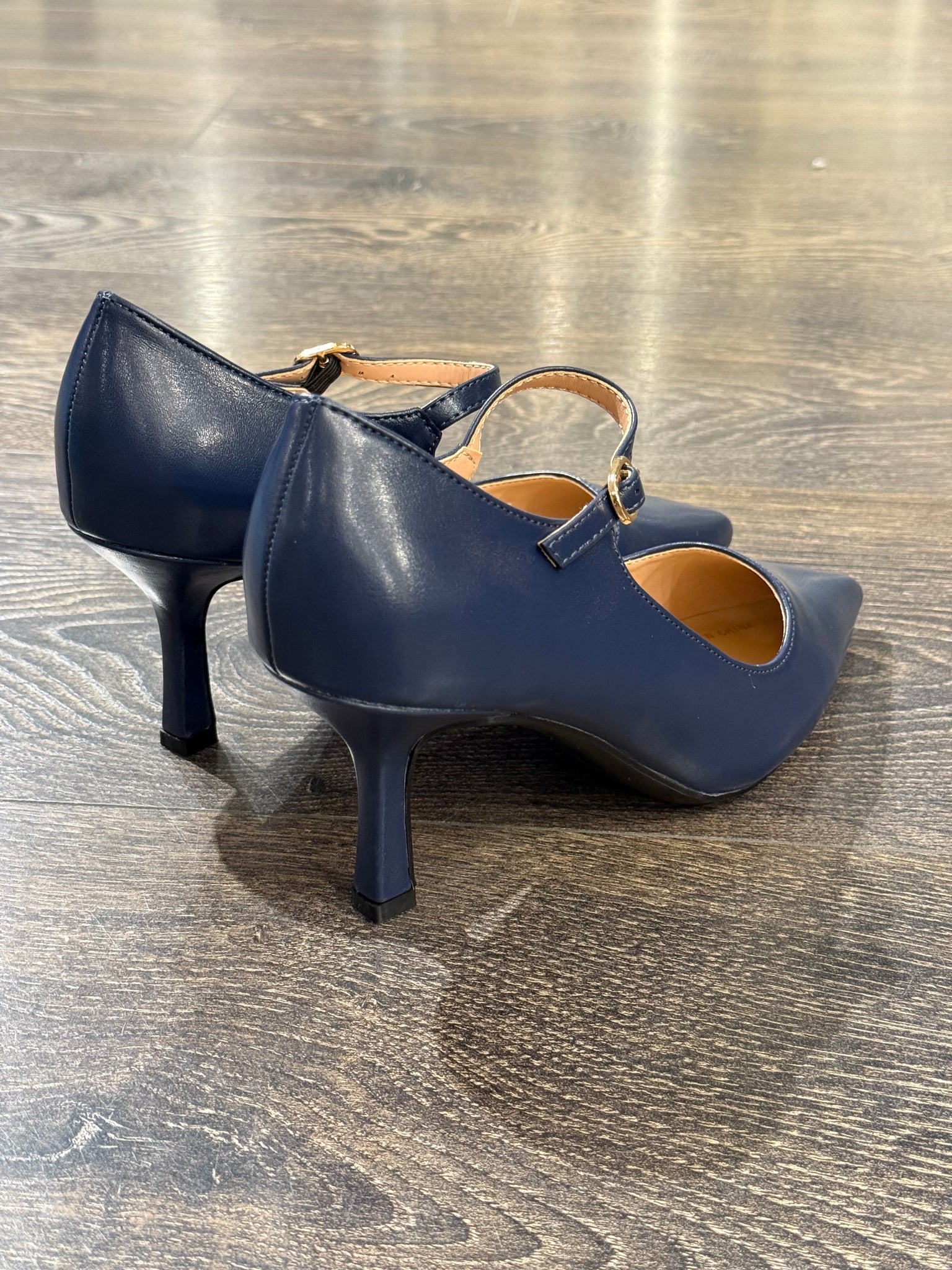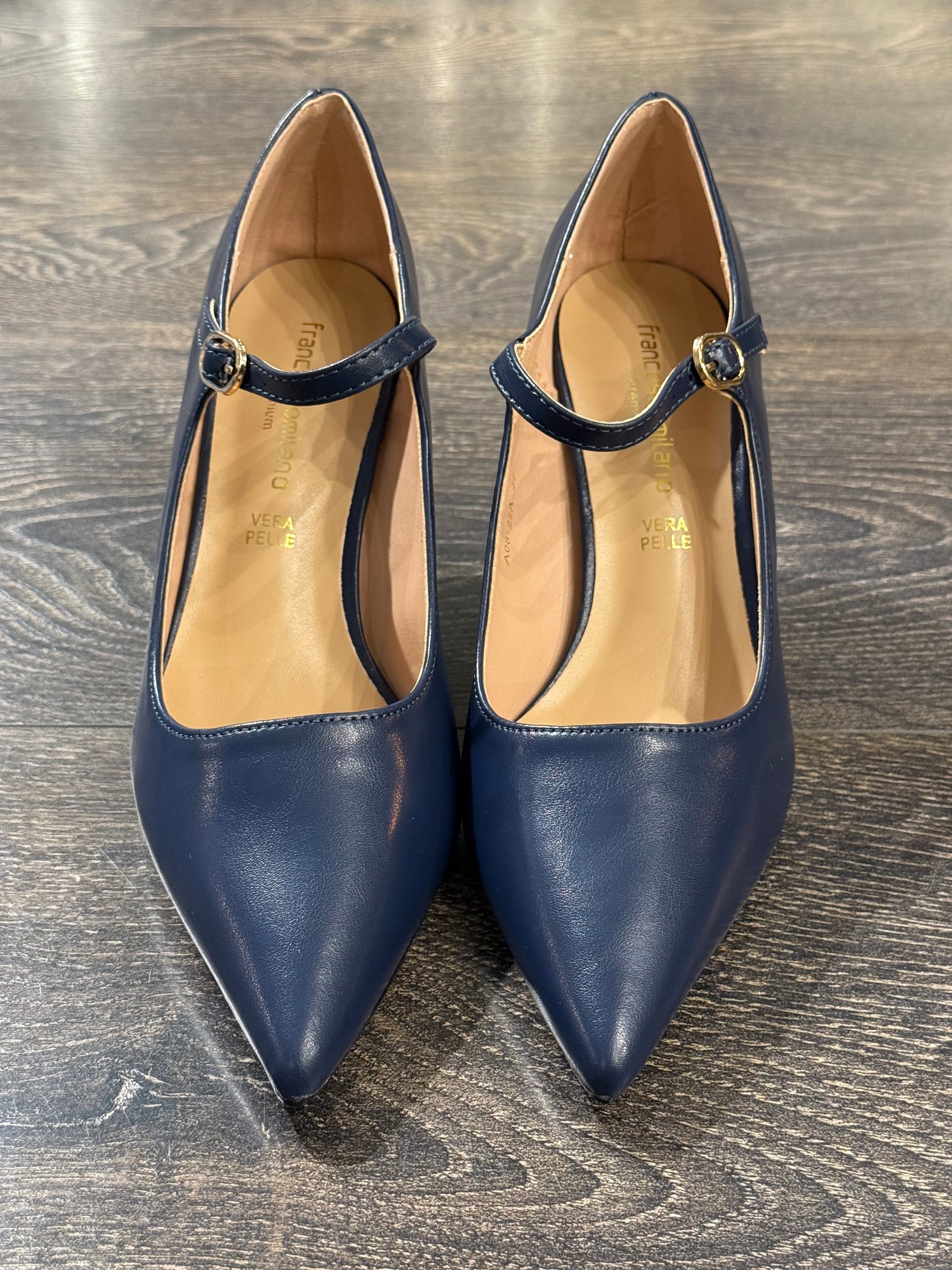 Francesco Milano decolletè in morbida pelle forma sfilata con cinturino sul collo del piede
