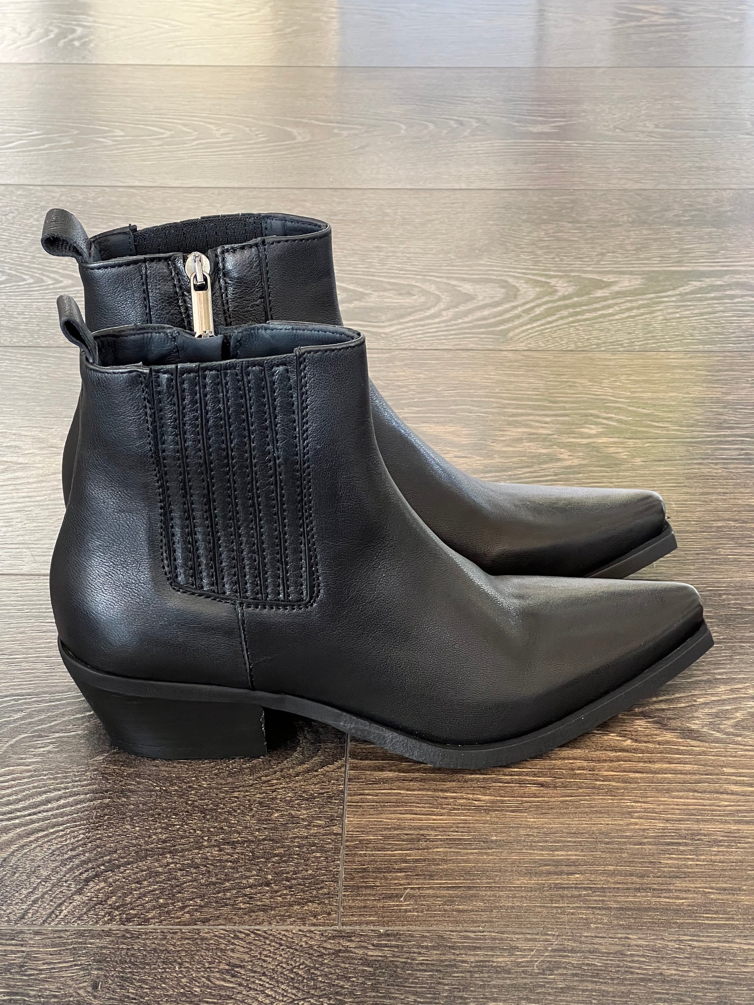 Zoe texano in pelle nera con zip interna ed  elastico esterno per facilitare la calzata,sottopiede imbottito