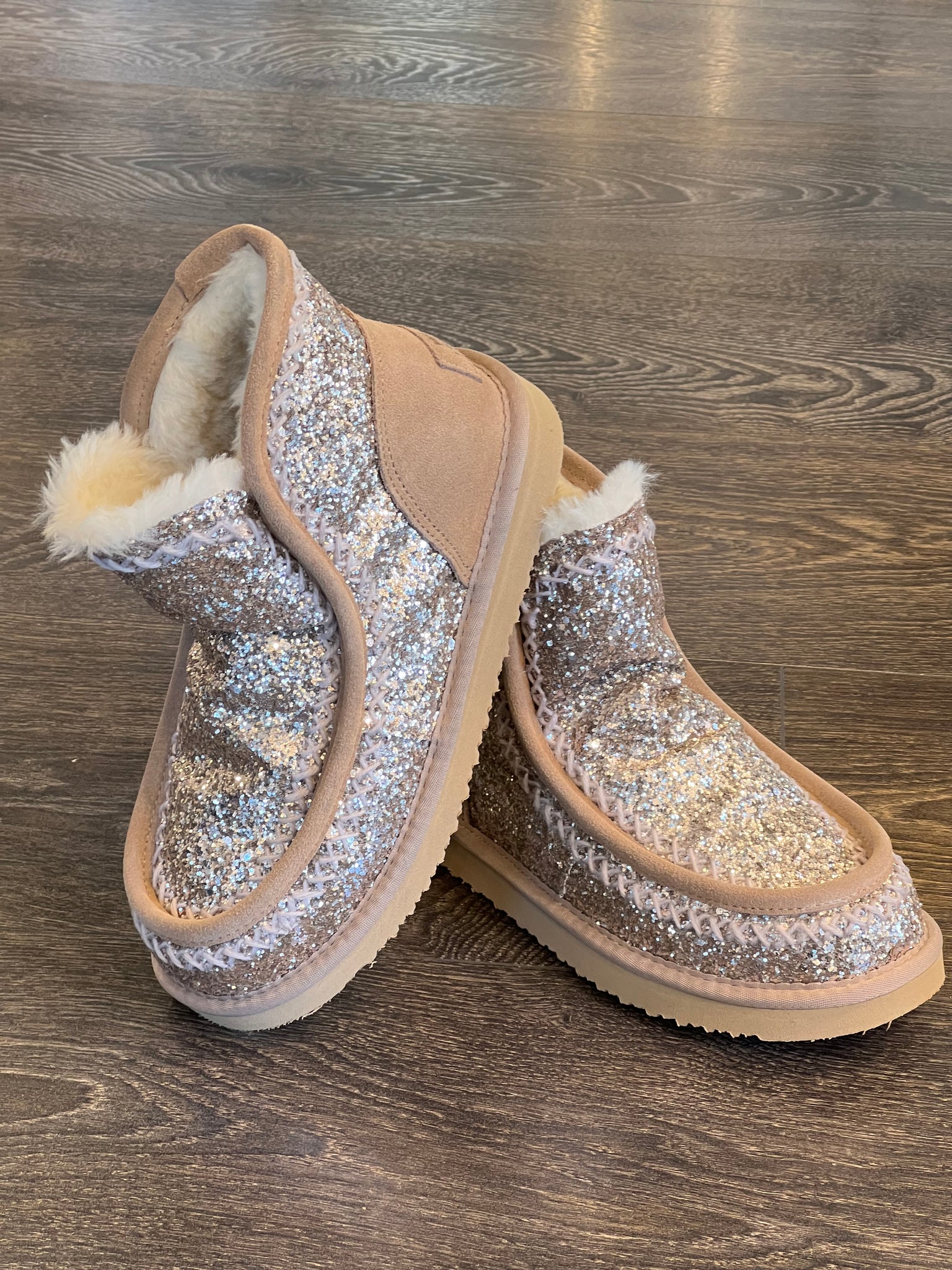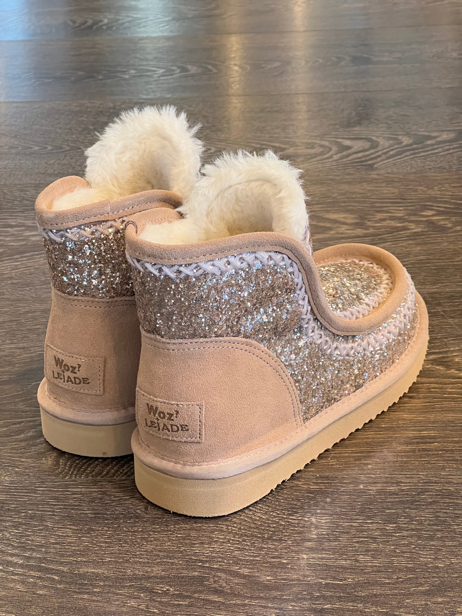 WOZ? stivaletto "pelosotto"in glitter+crosta beige tipo "australiano"