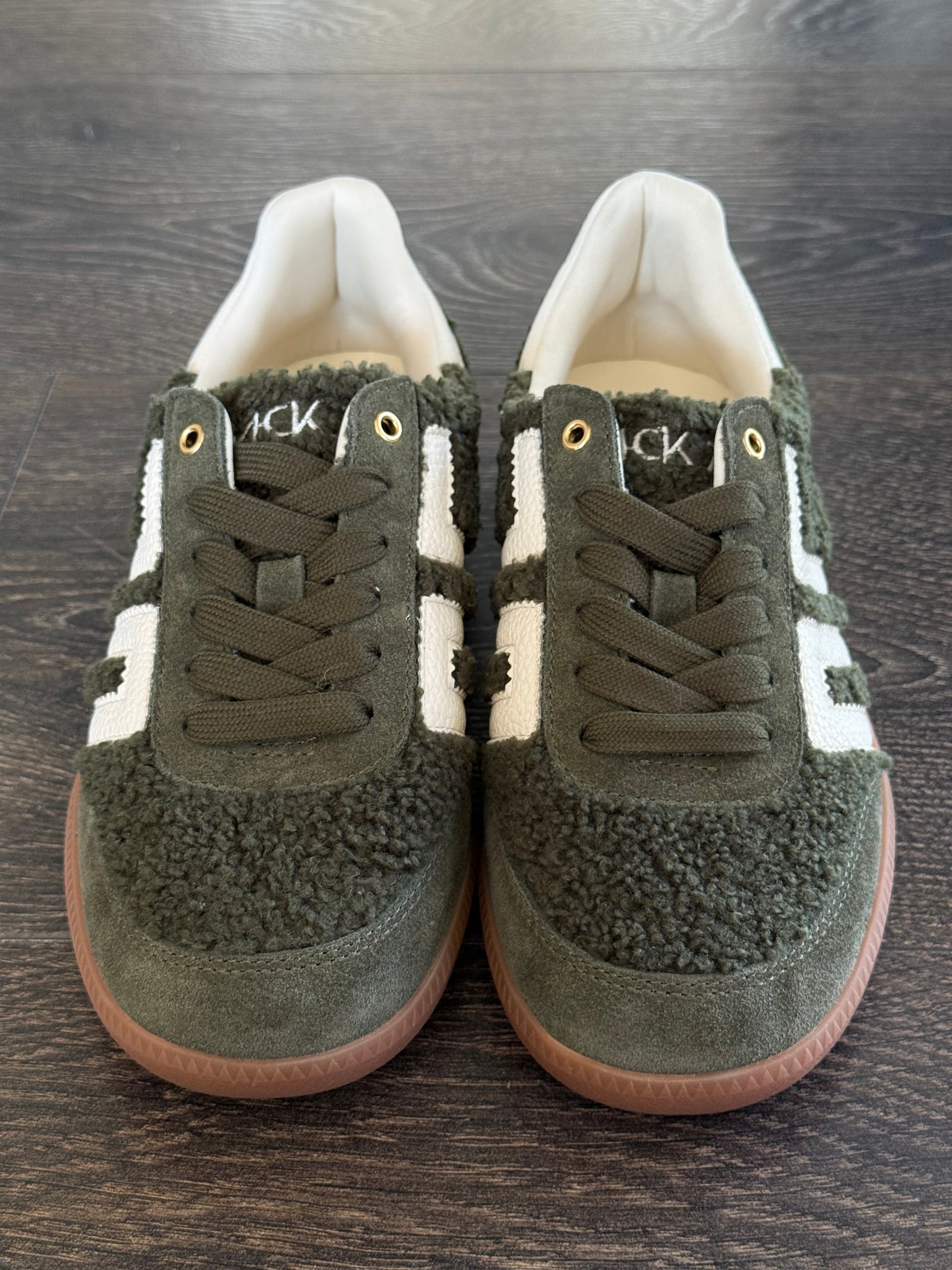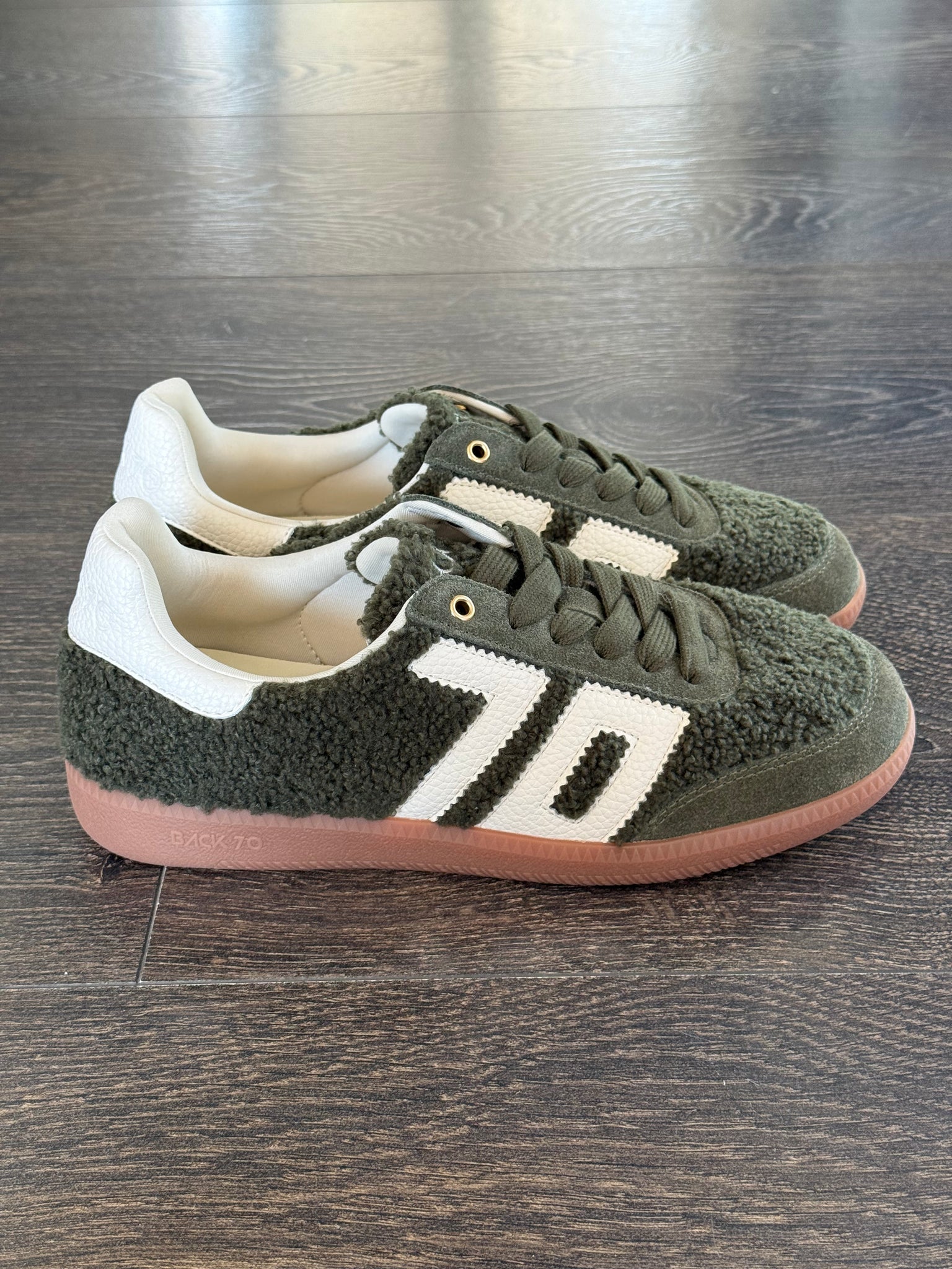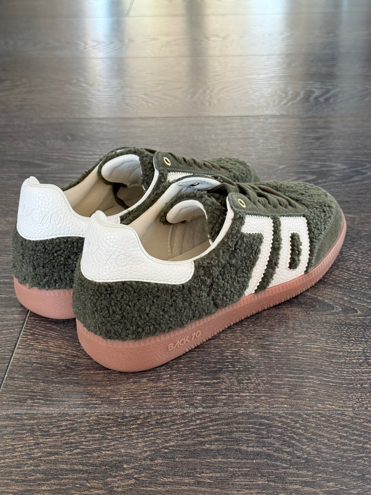 Back 70 sneaker in teddy verde con logo laterale in pelle bianco