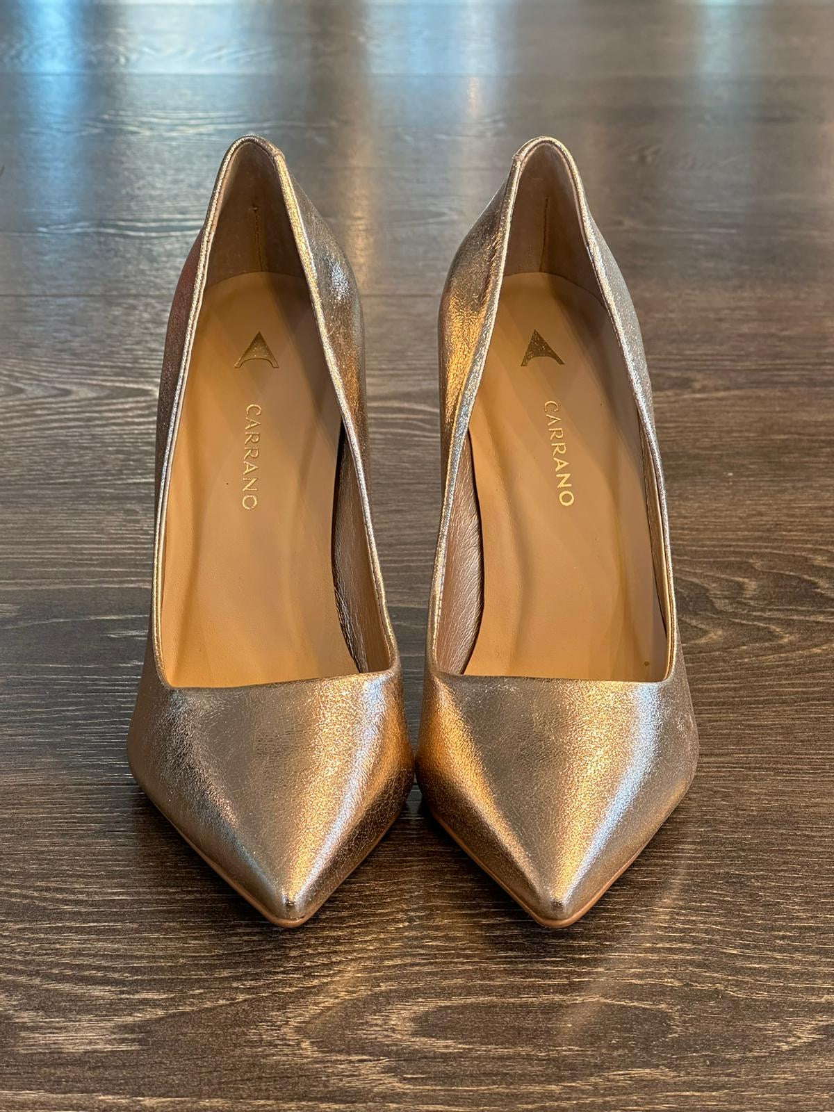CARRANO DECOLLETE IN PELLE LAMINATA ORO TACCO 10,5CM  IN ACCIAIO