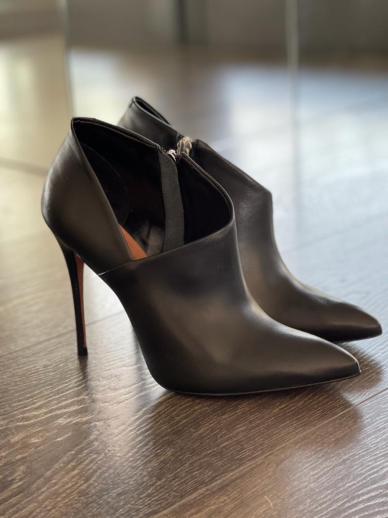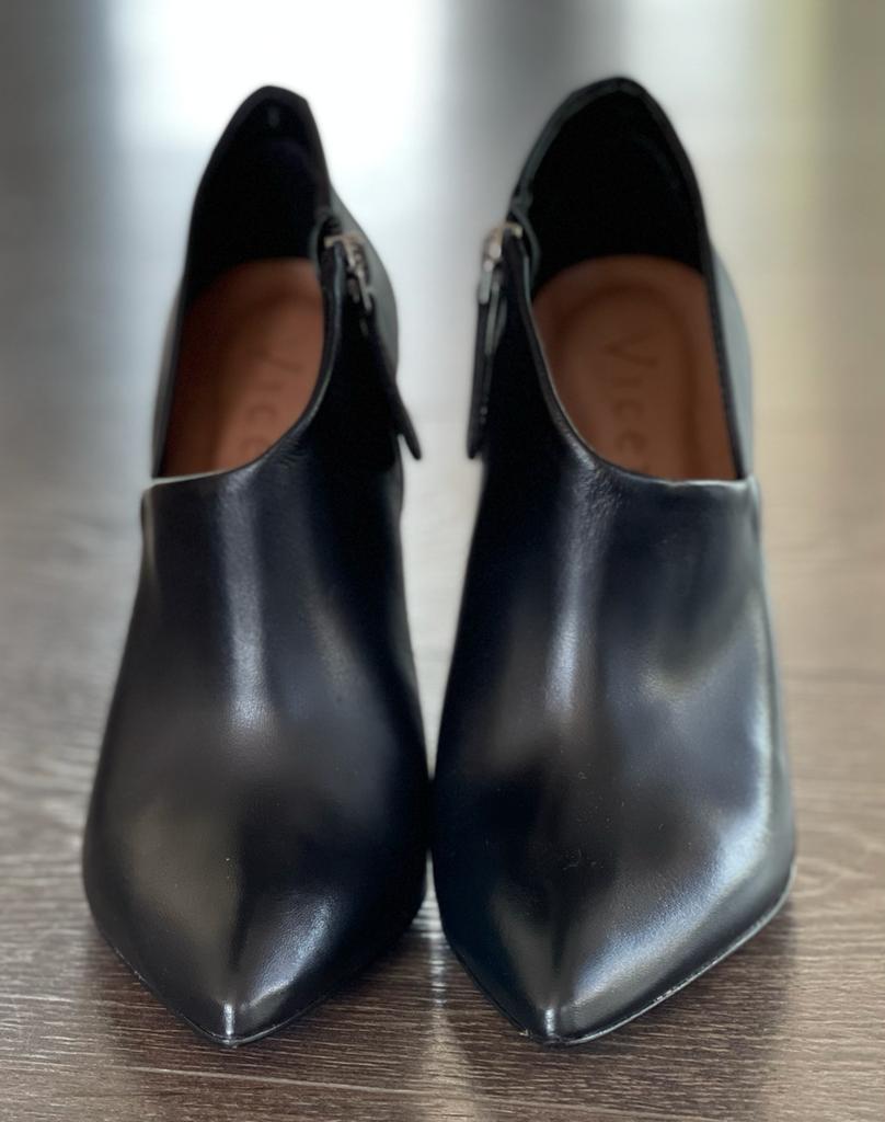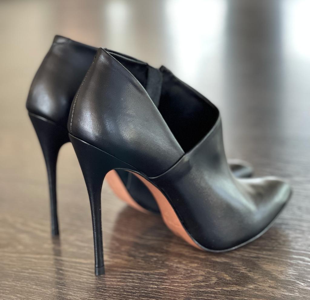 VICENZA TRONCHETTOIN PELLE COLOR NERO TACCO A SPILO 10,5CM